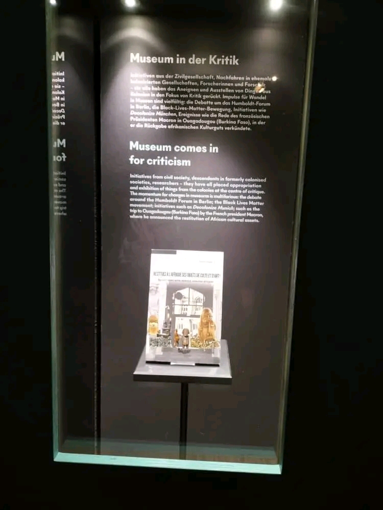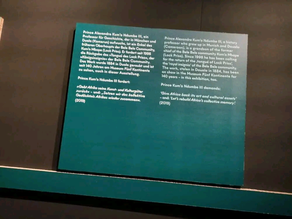 Dr Uta Wehrlicht, Directrice du Musée des 5 continents de Munich, Prince Kum’a Ndumbe III et PD. Dr. Richard Hölzl en charge de recherche sur l’origine des artefacts et curateur de l’exposition « Colonialisme dans les artefacts » Photos JPEG par whatsapp